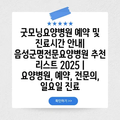 굿모닝요양병원 예약 및 진료시간 공지| 음성군명전문요양병원 추천 리스트 2025 | 요양병원, 예약, 전연락, 일요일 진료 에 대해 자주 묻는 질문 TOP 5
