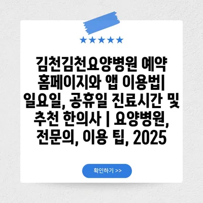 김천김천요양병원 예약 홈페이지와 앱 이용법| 일요일, 공휴일 진료시간 및 추천 한의사 | 요양병원, 전문의, 이용 팁, 2025
