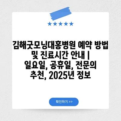 김해굿모닝대홍병원 예약 방법 및 진료시간 공지 | 일요일, 공휴일, 전연락 추천, 2025년 정보 에 대해 자주 묻는 질문 TOP 5