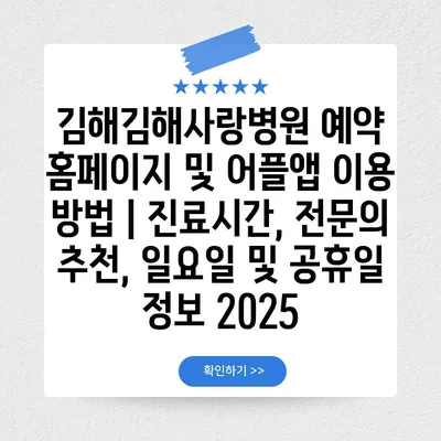 김해김해사랑병원 예약 홈페이지 및 어플앱 이용 방법|진료시간, 전연락 추천, 일요일 및 공휴일 정보 2025 에 대해 자주 묻는 질문 TOP 5