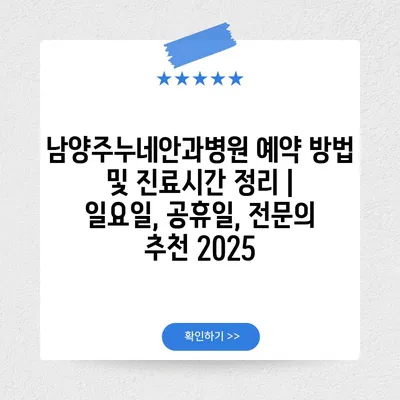 ✅ 남양주누네안과병원의 진료시간과 예약 방법을 알아보세요!