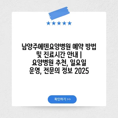✅ 남양주에덴요양병원 예약 방법과 진료시간을 지금 바로 확인하세요!