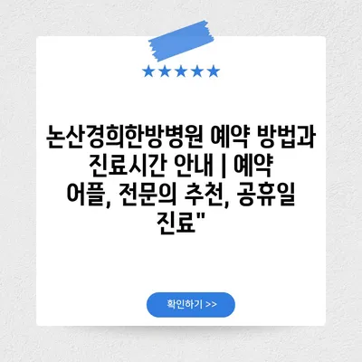 논산경희한방병원의 예약 방법을 지금 알아보세요!