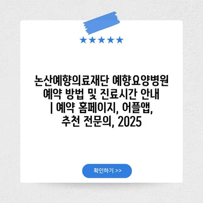 논산예향의료재단 예향요양병원 예약 방법 및 진료시간 공지 | 예약 홈페이지, 어플앱, 추천 전연락, 2025 에 대해 자주 묻는 질문 TOP 5