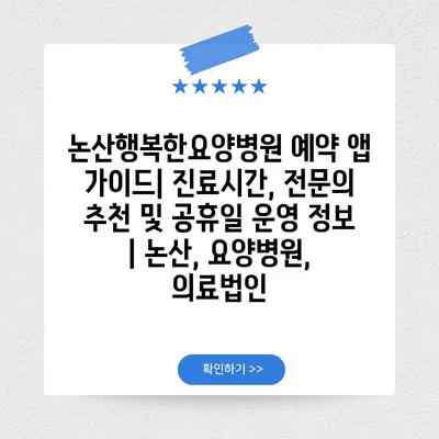 ✅ 논산행복한요양병원의 예약 방법과 진료시간을 알아보세요.