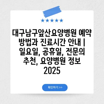 대구남구앞산요양병원 예약 방법과 진료시간 공지 | 일요일, 공휴일, 전연락 추천, 요양병원 정보 2025 에 대해 자주 묻는 질문 TOP 5