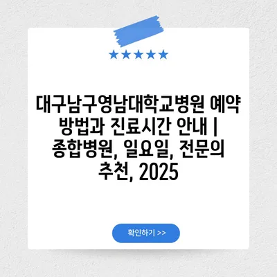 대구남구영남대학교병원 예약 방법과 진료시간 공지 | 종합병원, 일요일, 전연락 추천, 2025 에 대해 자주 묻는 질문 TOP 5