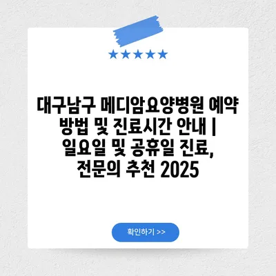 대구남구 메디암요양병원 예약 방법 및 진료시간 공지 | 일요일 및 공휴일 진료, 전연락 추천 2025 에 대해 자주 묻는 질문 TOP 5