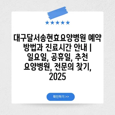 대구달서송현효요양병원 예약 방법과 진료시간 공지 | 일요일, 공휴일, 추천 요양병원, 전연락 찾기, 2025 에 대해 자주 묻는 질문 TOP 5