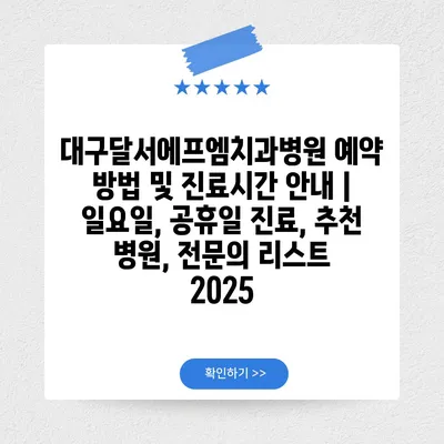 대구달서에프엠치과병원 예약 방법 및 진료시간 공지 | 일요일, 공휴일 진료, 추천 병원, 전연락 리스트 2025 에 대해 자주 묻는 질문 TOP 5