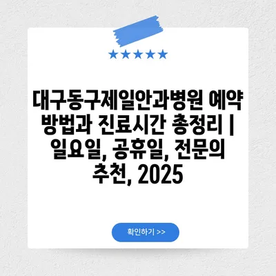 ✅ 대구동구제일안과병원의 진료시간과 예약 정보, 지금 바로 알아보세요!