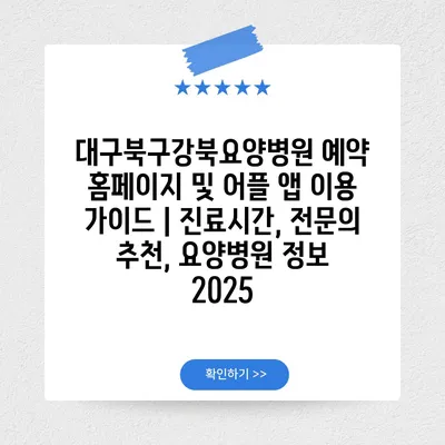 ✅ 대구북구강북요양병원의 모든 예약 정보를 지금 바로 확인해 보세요.