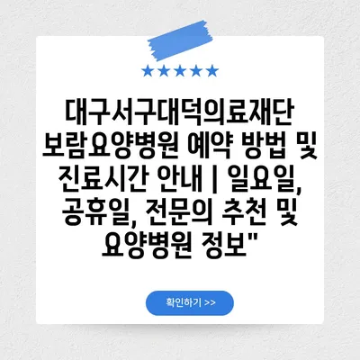 ✅ 대구서구대덕의료재단 보람요양병원의 예약 방법과 진료시간을 자세히 알아보세요.