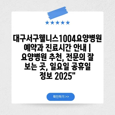 대구서구웰니스1004요양병원 예약과 진료시간 공지 | 요양병원 추천, 전연락 잘 보는 곳, 일요일 공휴일 정보 2025″ 에 대해 자주 묻는 질문 TOP 5