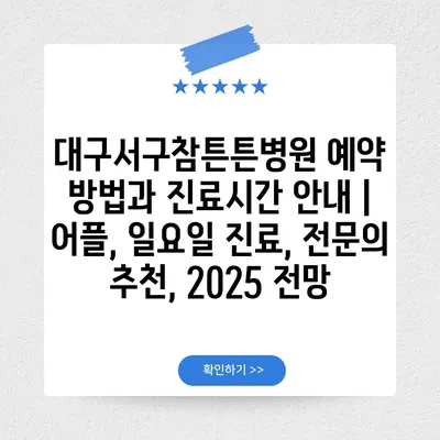 대구서구참튼튼병원 예약 방법과 진료시간 공지 | 어플, 일요일 진료, 전연락 추천, 2025 전망 에 대해 자주 묻는 질문 TOP 5