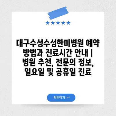 ✅ 대구수성수성한미병원 예약 방법과 진료시간을 자세히 알아보세요.