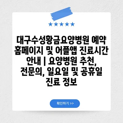 ✅ 대구수성황금요양병원의 진료시간과 예약 방법을 알아보세요.