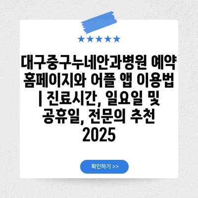 대구중구누네안과병원 예약 홈페이지와 어플 앱 이용법 | 진료시간, 일요일 및 공휴일, 전연락 추천 2025에 대해 알아보겠습니다.