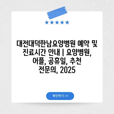 대전대덕한남요양병원 예약 및 진료시간 안내 | 요양병원, 어플, 공휴일, 추천 전문의, 2025