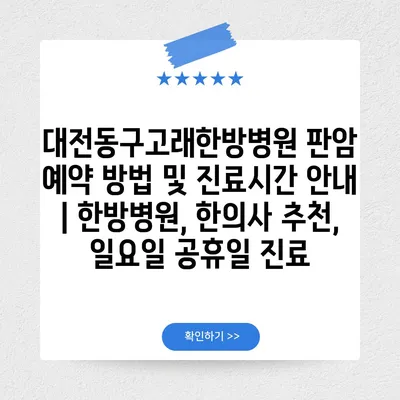 대전동구고래한방병원 판암 예약 방법 및 진료시간 공지 | 한방병원, 한의사 추천, 일요일 공휴일 진료 에 대해 자주 묻는 질문 TOP 5