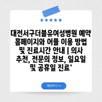 ✅ 대전서구더블유여성병원의 진료시간과 예약 방법을 알아보세요.
