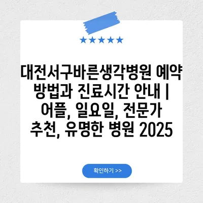 대전서구바른생각병원 예약 방법과 진료시간 공지 | 어플, 일요일, 전문가 추천, 유명한 병원 2025에 대해 소개합니다.