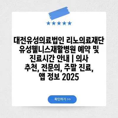 대전유성의료법인 리노의료재단 유성웰니스재활병원 예약 및 진료시간 공지 | 의사 추천, 전연락, 주말 진료, 앱 정보 2025