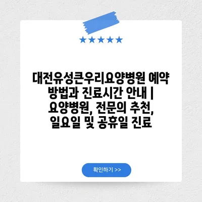 ✅ 대전유성큰우리요양병원의 예약 방법과 진료시간을 지금 바로 알아보세요!