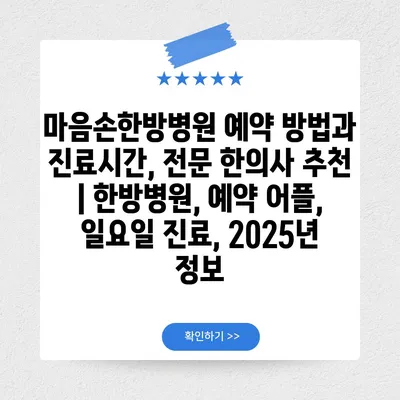 마음손한방병원 예약 방법과 진료시간, 전문 한의사 추천 | 한방병원, 예약 어플, 일요일 진료, 2025년 정보 에 대해 자주 묻는 질문 TOP 5