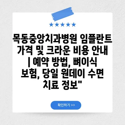 목동중앙치과병원 임플란트 가격 및 크라운 비용 공지 | 예약 방법, 뼈이식 보험, 당일 원데이 수면 치료 정보
