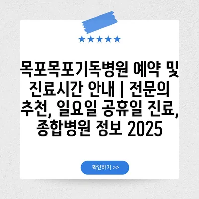 목포목포기독병원 예약 및 진료시간 공지 | 전연락 추천, 일요일 공휴일 진료, 종합병원 정보 2025 에 대해 자주 묻는 질문 TOP 5