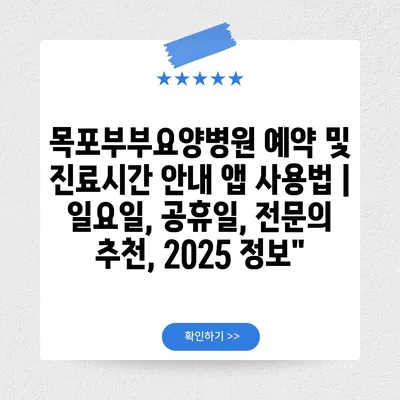 목포부부요양병원 예약 및 진료시간 공지 앱 사용법 | 일요일, 공휴일, 전연락 추천, 2025 정보