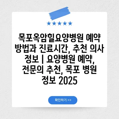 목포옥암힐요양병원 예약 방법과 진료시간, 추천 의사 정보 | 요양병원 예약, 전연락 추천, 목포 병원 정보 2025 에 대해 자주 묻는 질문 TOP 5