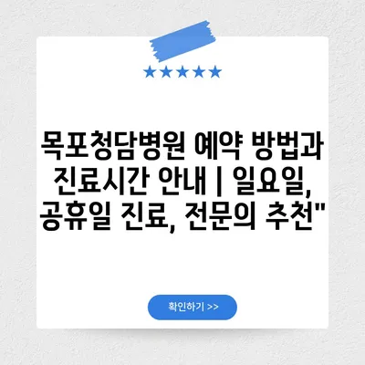 ✅ 목포청담병원 진료시간과 예약 방법을 자세히 알아보세요.