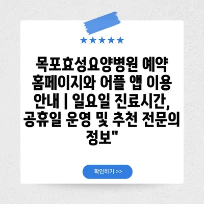 목포효성요양병원 예약 홈페이지와 어플 앱 이용 공지 | 일요일 진료시간, 공휴일 운영 및 추천 전연락 정보에 대해 자주 묻는 질문 TOP 5