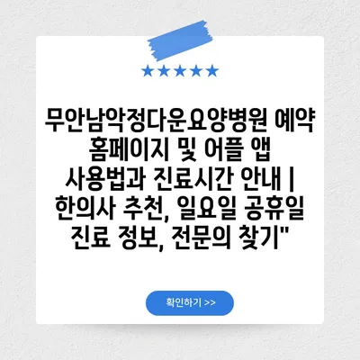 ✅ 무안남악정다운요양병원의 예약 방법을 간편하게 알아보세요.
