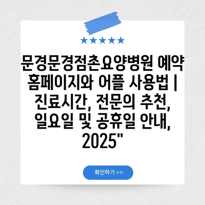 문경문경점촌요양병원 예약 홈페이지와 어플 사용법 | 진료시간, 전연락 추천, 일요일 및 공휴일 공지, 2025″ 에 대해 자주 묻는 질문 TOP 5