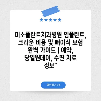 미소플란트치과병원 임플란트, 크라운 비용 및 뼈이식 보험 완벽 설명서 | 예약, 당일원데이, 수면 치료 정보에 대해 자주 묻는 질문 TOP 5