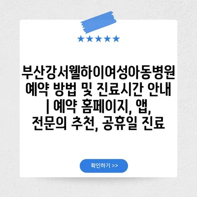 부산강서웰하이여성아동병원 예약 방법 및 진료시간 공지 | 예약 홈페이지, 앱, 전연락 추천, 공휴일 진료 에 대해 자주 묻는 질문 TOP 5
