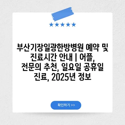 부산기장일광한방병원 예약 및 진료시간 안내 | 어플, 전문의 추천, 일요일 공휴일 진료, 2025년 정보