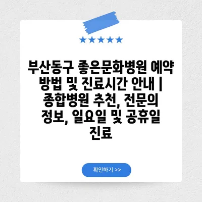 ✅ 부산동구 좋은문화병원 예약 방법과 진료시간을 자세히 알아보세요.