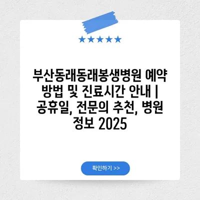 부산동래동래봉생병원 예약 방법 및 진료시간 공지 | 공휴일, 전연락 추천, 병원 정보 2025 에 대해 자주 묻는 질문 TOP 5