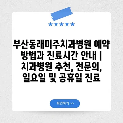 ✅ 부산동래미주치과병원의 진료시간과 예약 방법을 자세히 알아보세요.