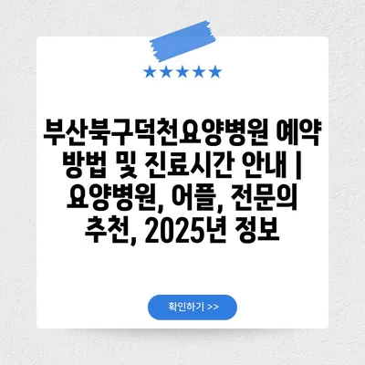 부산북구덕천요양병원 예약 방법 및 진료시간 공지 | 요양병원, 어플, 전연락 추천, 2025년 정보 에 대해 자주 묻는 질문 TOP 5