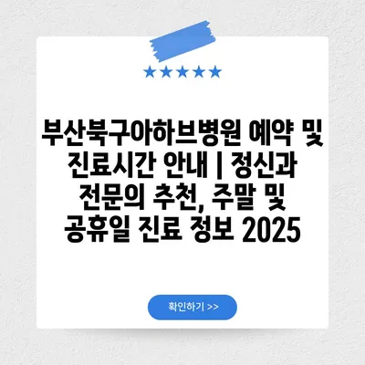 부산북구아하브병원 예약 및 진료시간 공지 | 정신과 전연락 추천, 주말 및 공휴일 진료 정보 2025 에 대해 자주 묻는 질문 TOP 5