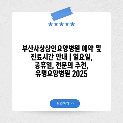 부산사상삼인요양병원 예약 및 진료시간 공지 | 일요일, 공휴일, 전연락 추천, 유명요양병원 2025 에 대해 자주 묻는 질문 TOP 5