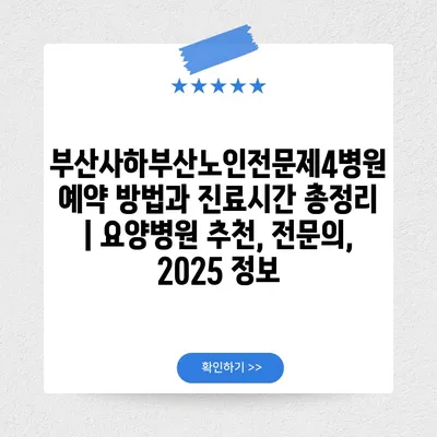 부산사하부산노인전문제4병원 예약 방법과 진료시간 총정리 | 요양병원 추천, 전연락, 2025 정보 에 대해 자주 묻는 질문 TOP 5