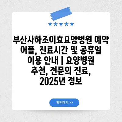 부산사하조이효요양병원 예약 어플, 진료시간 및 공휴일 이용 공지 | 요양병원 추천, 전연락 진료, 2025년 정보에 대한 내용을 소개합니다.