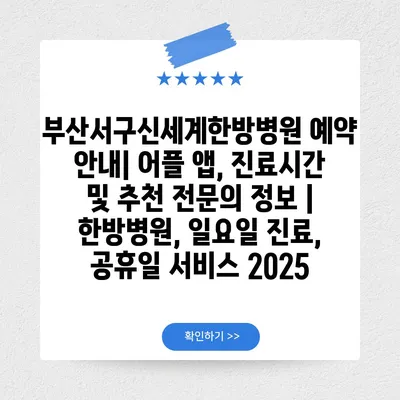 ✅ 부산서구신세계한방병원의 예약 방법과 진료시간도 함께 알아보세요.