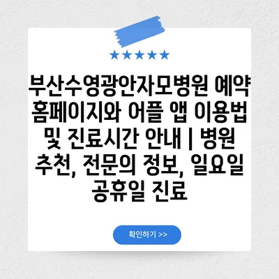 부산수영광안자모병원 예약 홈페이지와 어플 앱 이용법 및 진료시간 공지 | 병원 추천, 전연락 정보, 일요일 공휴일 진료 에 대해 자주 묻는 질문 TOP 5